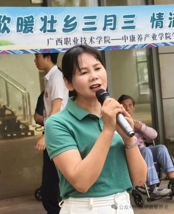 活动正式开始后,广西职业技术学院的老师和各区护士长们首先为长者们送上节日祝福。老师代表说:“今天我们来陪爷爷奶奶们一起过节,希望大家过一个开心的‘三月三’。”护士长们也给所在护理区的长者送上问候。